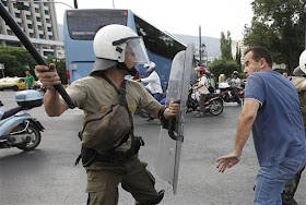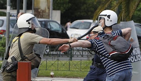 | Πώς να νοιώθει άραγε ο αστυνόμος που στέκεται πάνω από τον διαδηλωτή; |